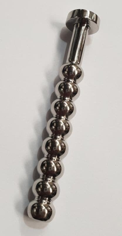 Eight-ball urethral plug with progressive sensation waves. Medical-grade steel construction with pee-through hollow design for extended wear.
