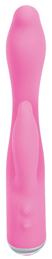 Dual-motor rabbit vibrator with 7 vibration patterns for simultaneous G-spot and clitoral stimulation. Waterproof silicone design.
