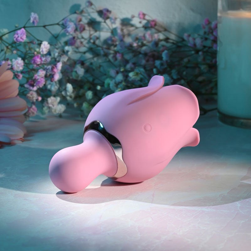 Dual-ended silicone vibrator with 9-speed patterns for simultaneous clitoral flicking and internal stimulation. Waterproof and rechargeable.