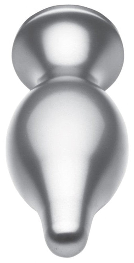 Aluminum anal plug with screw-in ring system for attaching weights. 4-inch insertable length with temperature play capabilities.