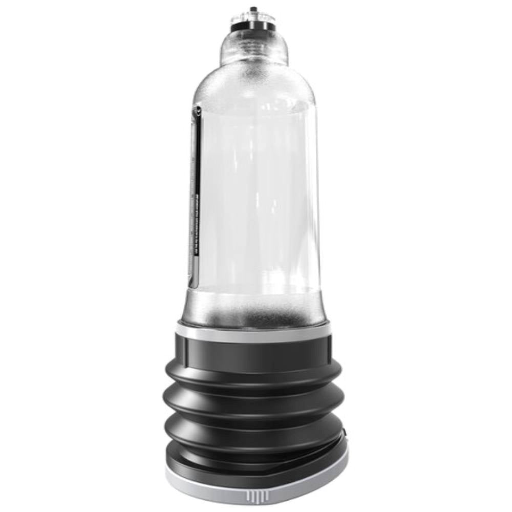 Water-based penis pump for 7-9 inch erect length. Hydraulic pressure system delivers even stimulation without bruising or discomfort.