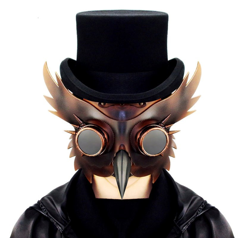 Integrated goggles provide authentic period-accurate gothic aesthetic