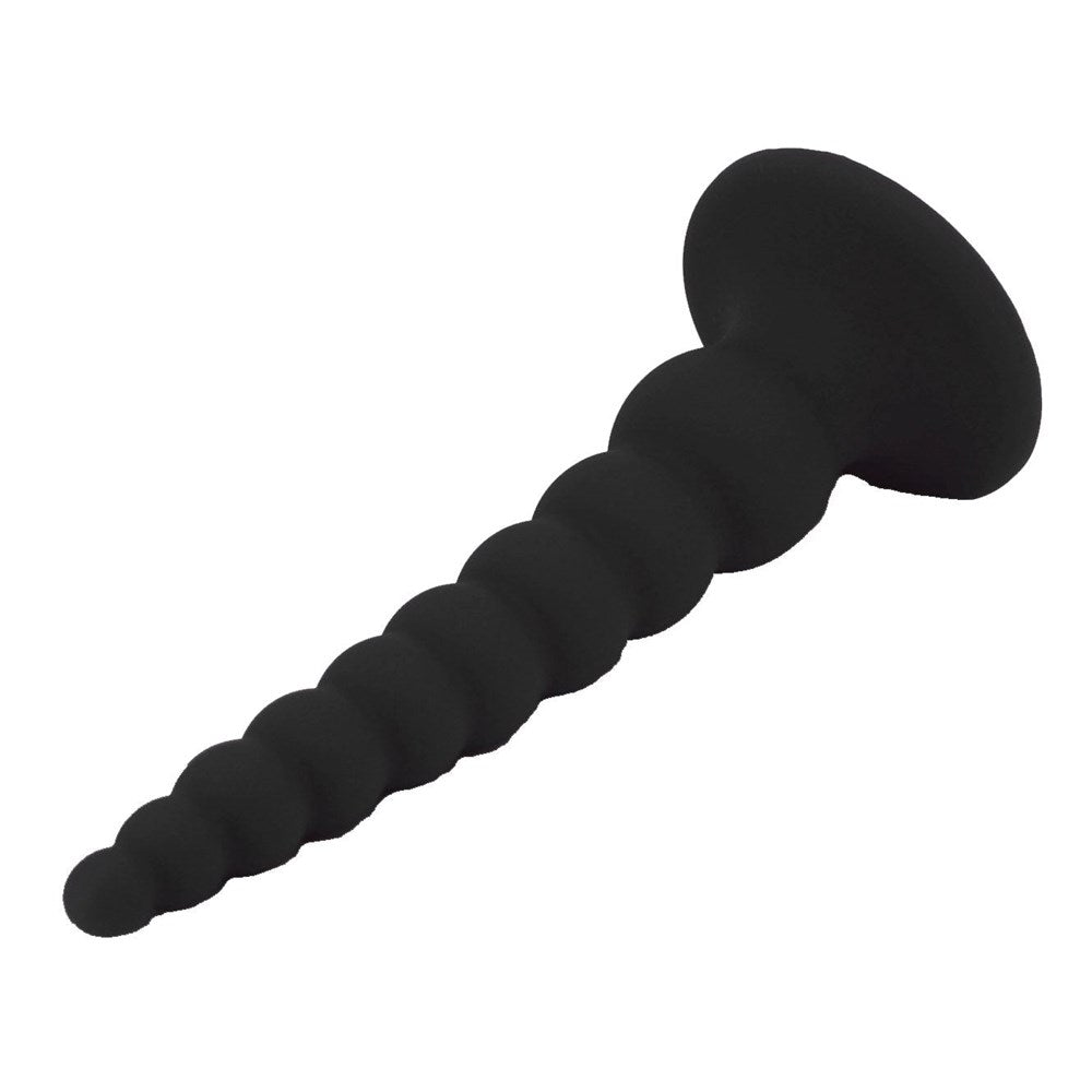 Graduated anal bead toy with nine progressive beads from 1.2cm to 3.9cm. Medical grade silicone with powerful suction cup base for hands-free or partnered play.