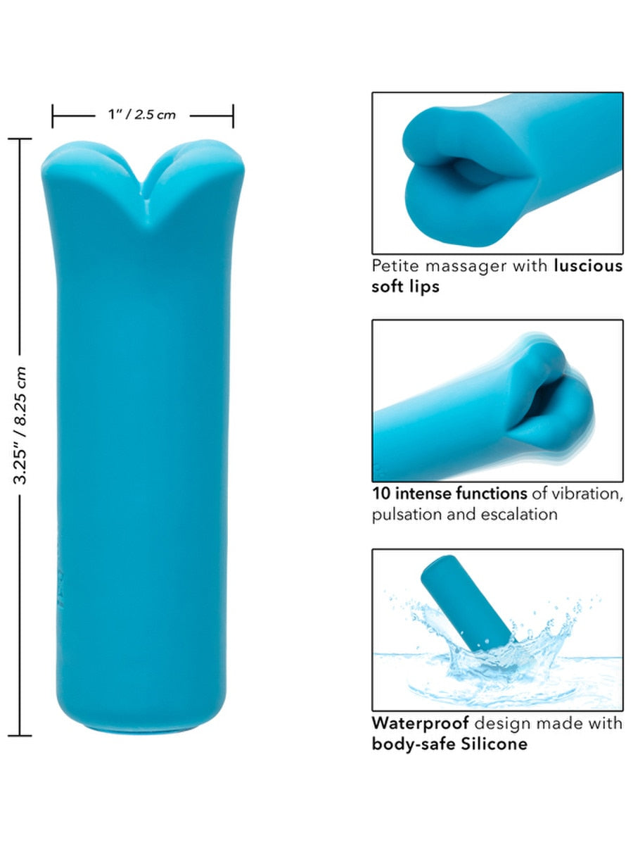 Compact clitoral vibrator with soft silicone lips design. 10 vibration modes, memory chip technology, and IPX7 waterproof rating.