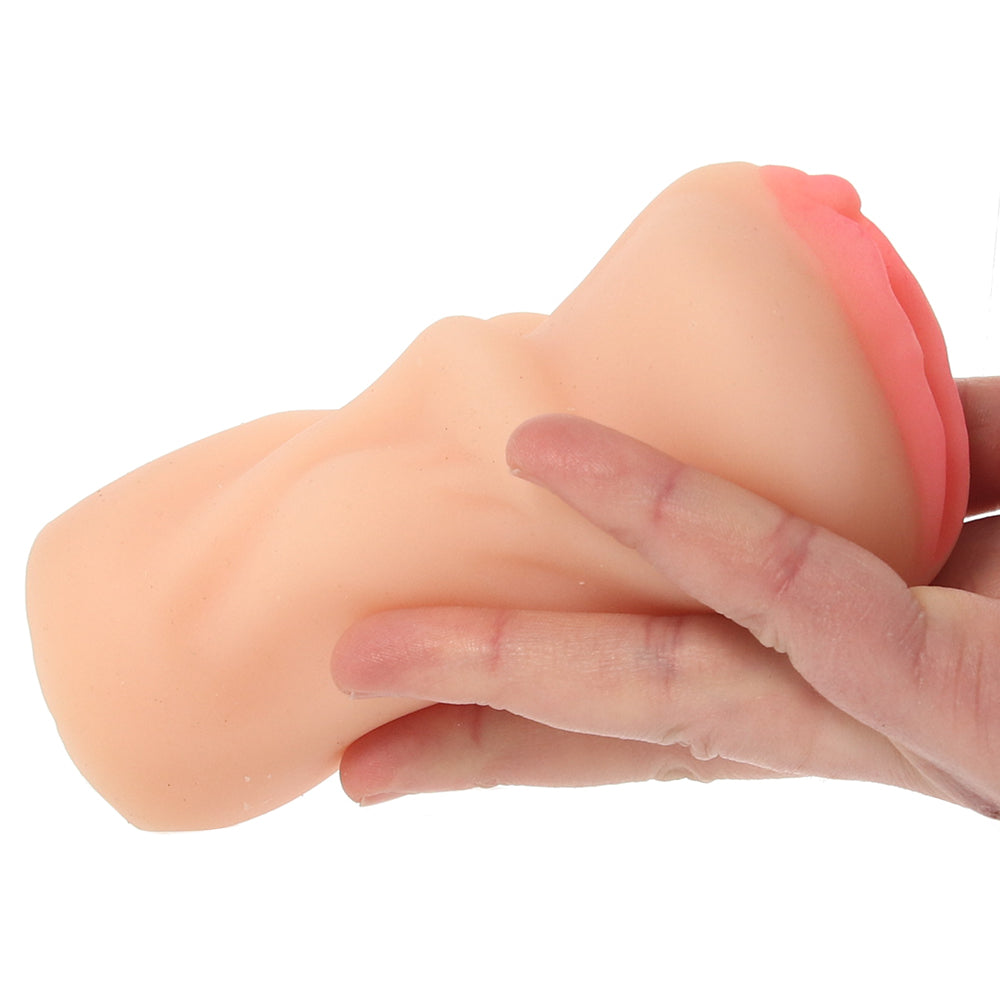 5-inch TPR pussy stroker molded from pornstar Carmen Caliente. Open-ended design with multi-textured tunnel and adjustable suction control.