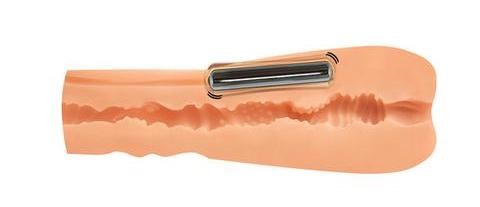 CyberSkin stroker with removable sleeve and textured interior for realistic sensations. Waterproof construction with six-function enhancement accessory.