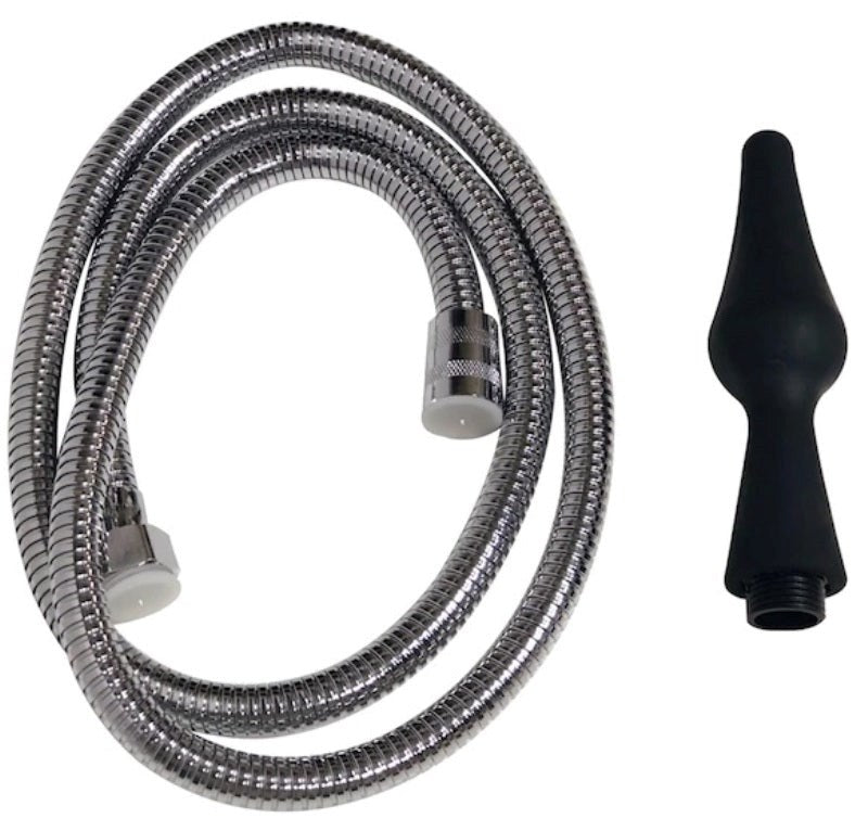 Silicone anal douche with adjustable water flow control for thorough pre-play cleansing. Tapered tip design, 7-inch length.