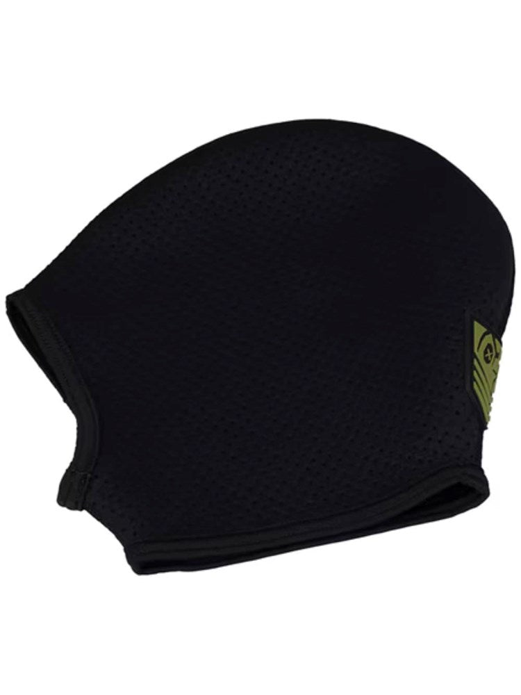 Perforated neoprene hood creates controlled sensory deprivation experience