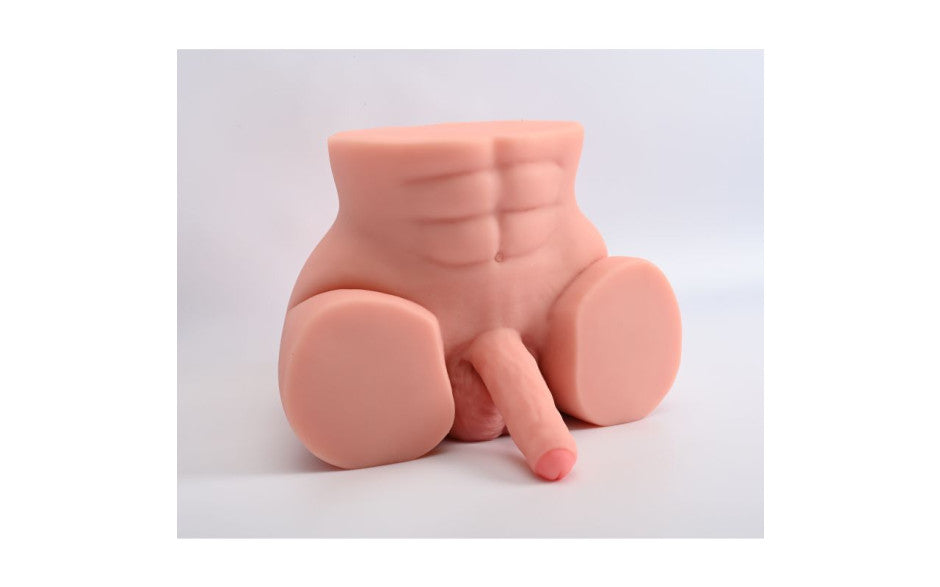 Realistic male torso masturbator with sculpted abs and lifelike anal channel. 3.5kg TPE construction for intense doggy-style play.