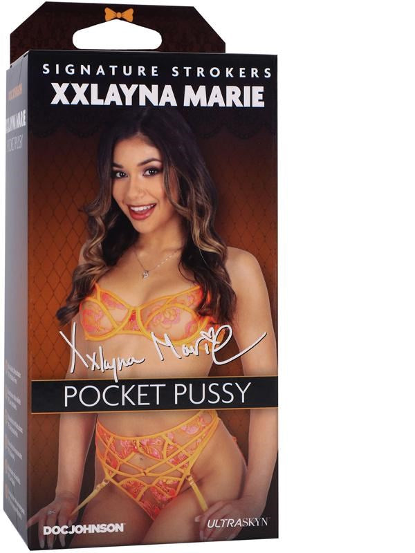 Handheld male masturbator molded from adult performer Xxlayna Marie. ULTRASKYN material warms to body heat for realistic stroking sensation.