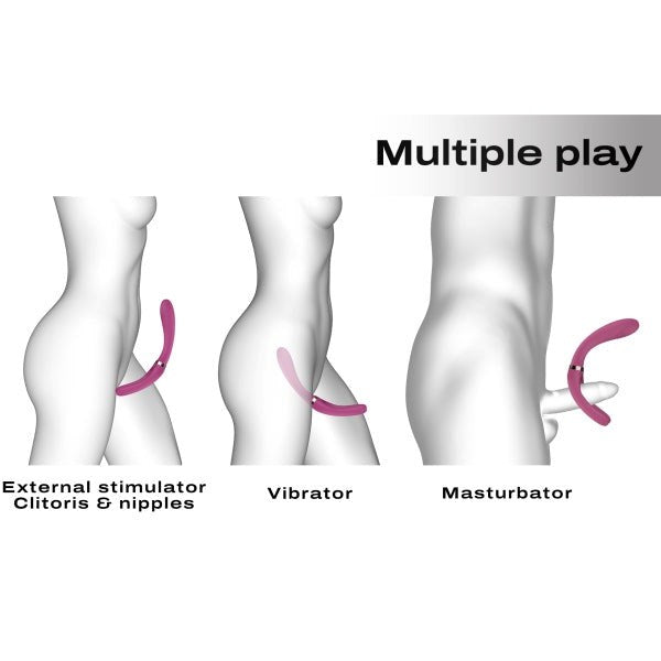 Flexible couples toy with 360° adjustable arms and triple motors for simultaneous multi-zone stimulation. Waterproof silicone construction.