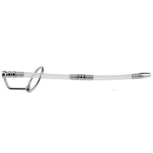 Explore intense urethral sensations with this dual-tube plug, featuring adjustable glans rings for a custom fit.