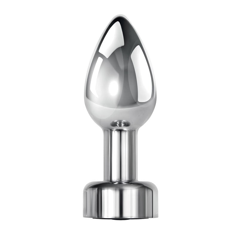Vibrating anal plug with weighted metal base and 7 vibration modes. Rechargeable, fully submersible silicone design for intense prostate stimulation.