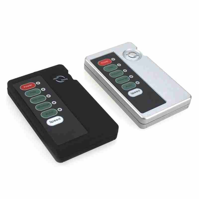 Portable e-stim power box with multiple stimulation patterns and intensity control. Universal 2.5mm DC port connects to various accessories. Battery-powered for freedom of movement.