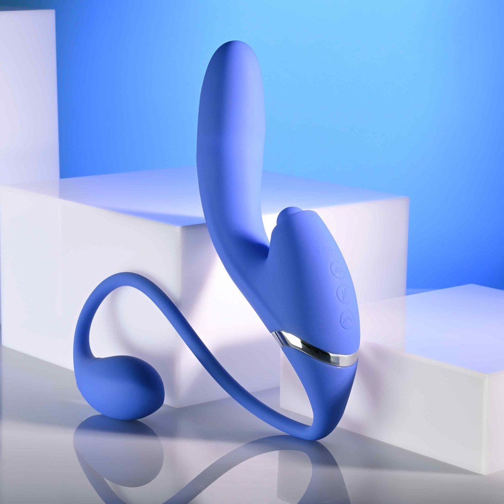 Evolved ALL IN delivers triple stimulation with three independent motors for thrusting, tapping, and vibration across 20+ settings.