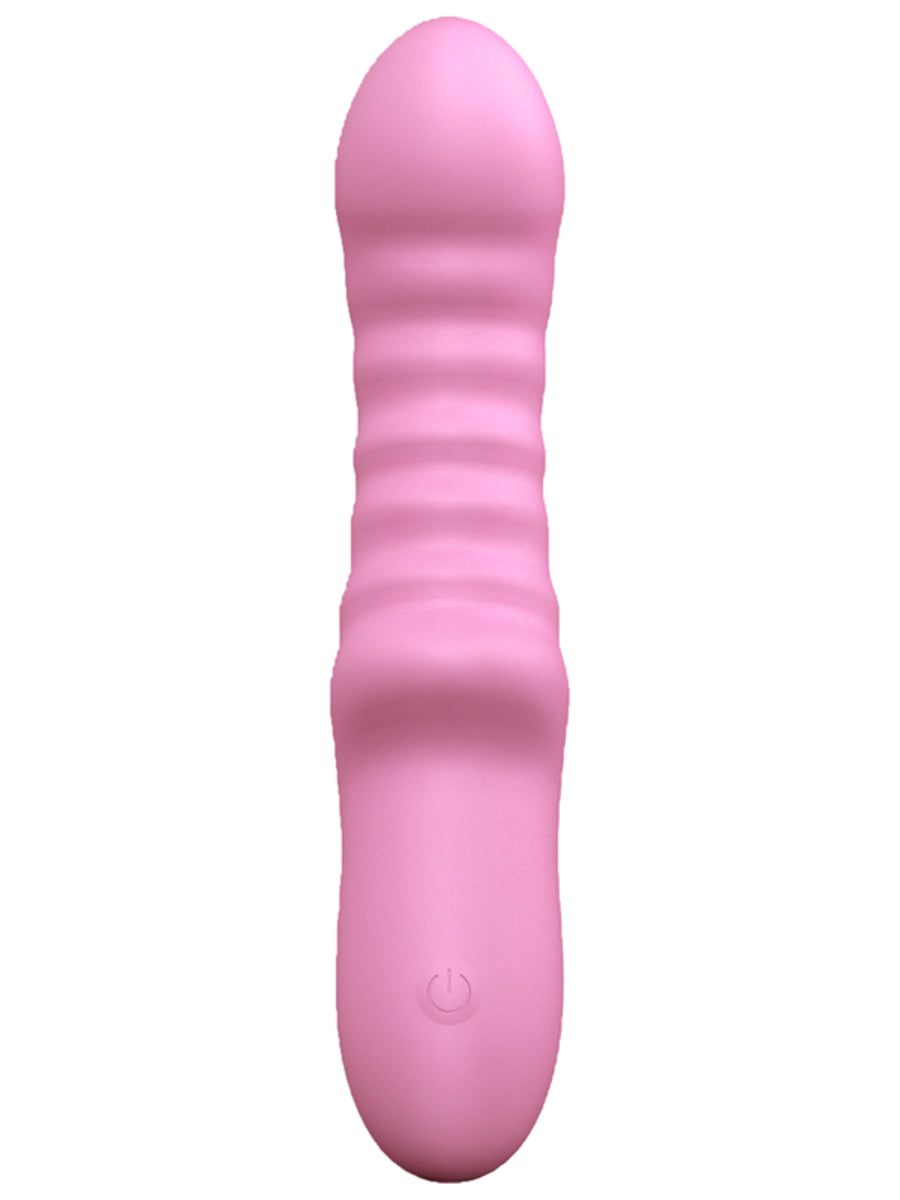 Curved G-spot vibrator with eight whisper-quiet modes and ribbed shaft. UltraSoft silicone flexes with your body for targeted stimulation.