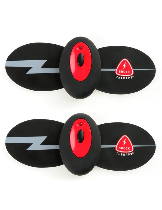 Wireless electro-massage kit with remote control. Six pulse modes and fifteen intensity levels for muscle therapy and stimulation.