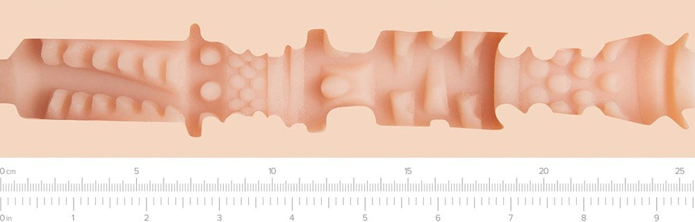 SuperSkin male stroker molded from Nicole Aniston with dual-texture canal. Temperature-responsive with adjustable suction control.