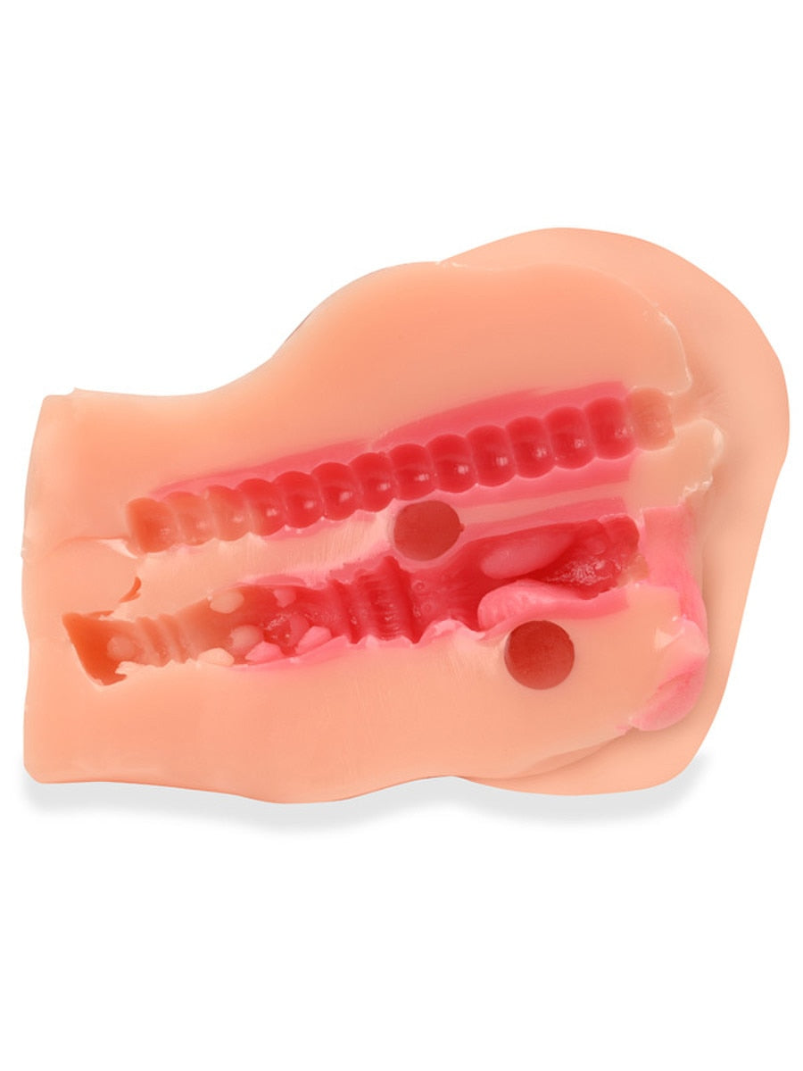 TPE dual-entry stroker with textured tunnels and realistic torso design. Two openings deliver varying sensations in one compact stroker.
