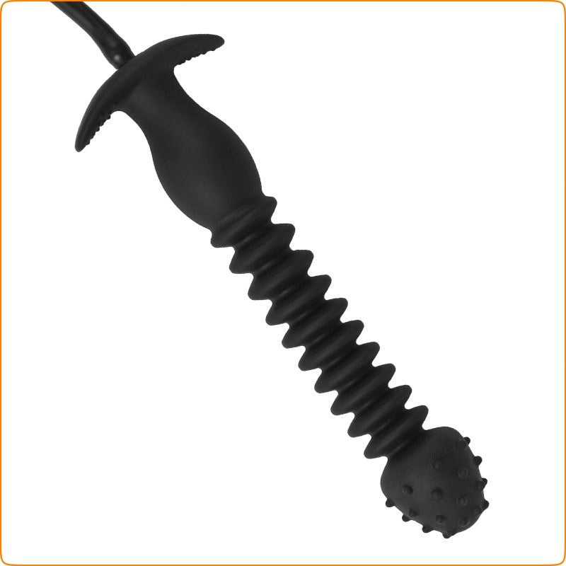 Inflatable anal plug with thrusting motion from BDStyle. Expands from 3.2cm to 18cm diameter with dual-action stimulation and 50cm control tube.
