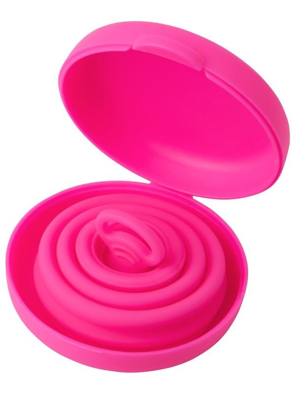 Medical-grade silicone menstrual cup with collapsible design for beginners. Double rim creates leak-free seal for up to 8 hours.
