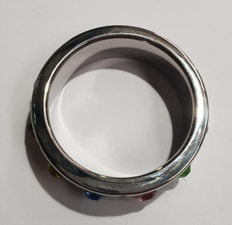 Experience sophistication with the Jewelled Brick Steel Cock Ring, featuring a unique brick pattern and vibrant gems for stylish intimacy.