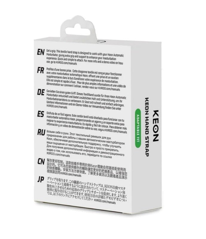 Hand strap accessory for Keon masturbator. Adjustable Velcro closure with silicone and cotton construction for stable grip during extended sessions.