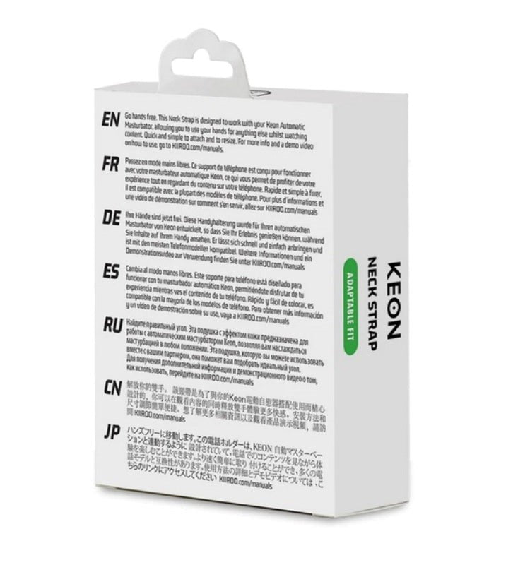 Hands-free neck strap mounting system for Keon devices. ABS plastic and cotton construction with Velcro adjustment for interactive sessions.