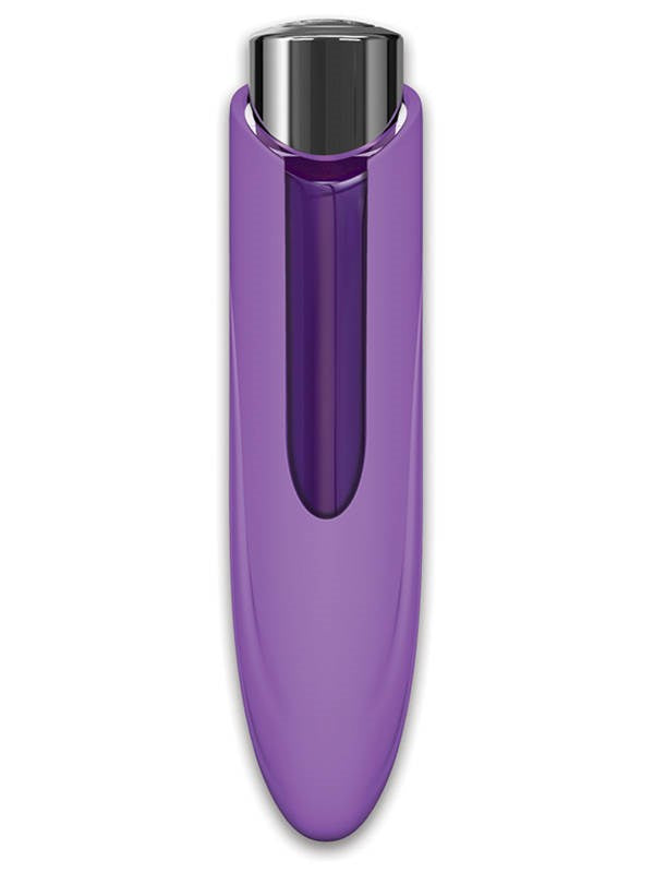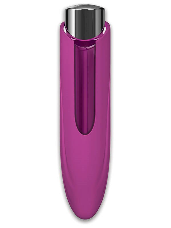 Mini massager with five vibration patterns and whisper-quiet motor. Dual-material design with removable silicone sleeve for customizable sensations.