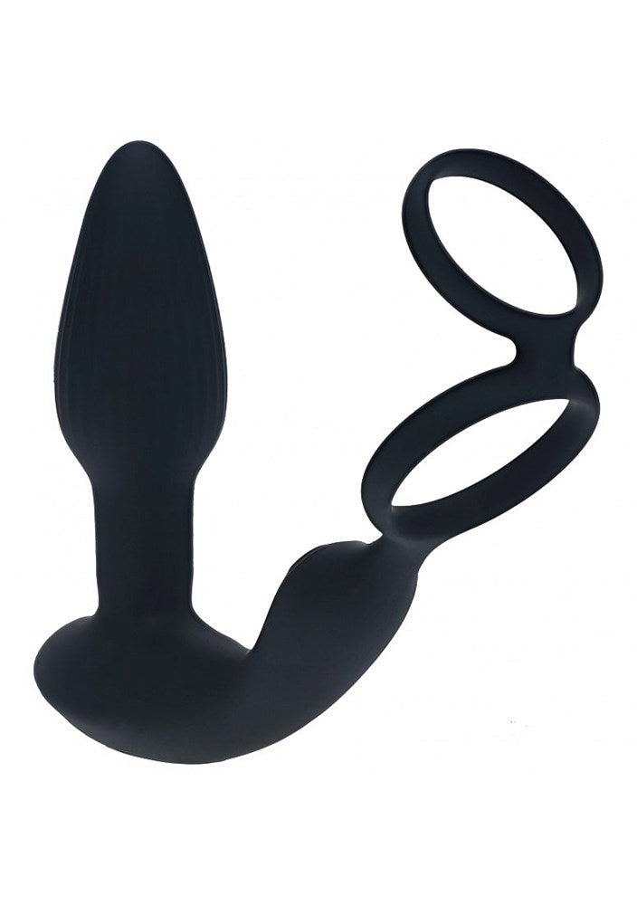 Dual vibrating prostate stimulator with integrated cock ring. Three motors, rotating beads, and wireless remote for customizable pleasure.