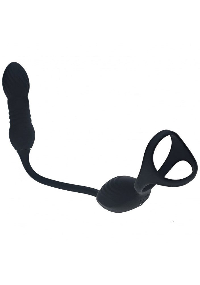 Dual-motor cock ring with independent thrusting and vibration. 10 speed modes target prostate and cock simultaneously for layered intensity.