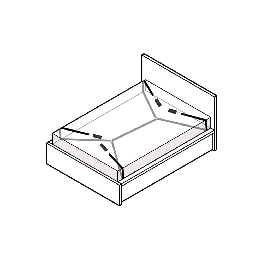 Under-bed restraint system with four anchor points and plush cuffs. Discreet setup slides beneath any mattress for invisible bondage storage.