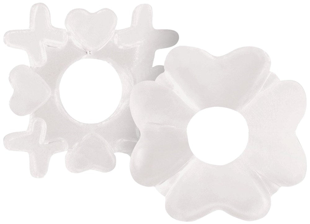 TPR dual cock rings with heart and X patterns. Graduated compression support for enhanced performance and extended wear.
