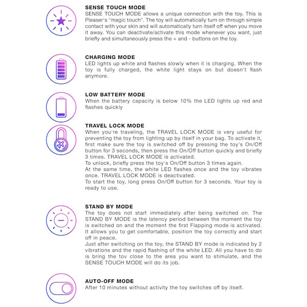 Silicone clitoral wand with flapping membrane that mimics oral sensations. Sense Touch activation responds to skin contact for hands-free control.
