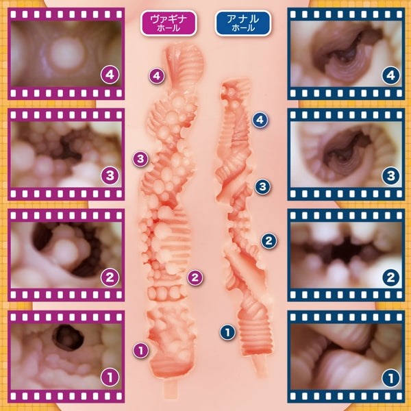 Standup masturbator with dual textured holes and hands-free frame design. Soft TPE material delivers realistic sensations for natural thrusting.