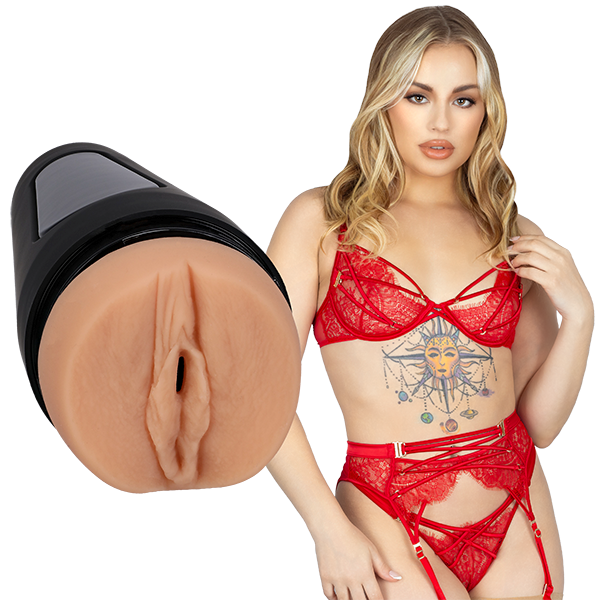 Realistic male stroker molded from actual body with textured ULTRASKYN interior. Squeeze plate controls pressure and suction for customized sensation.