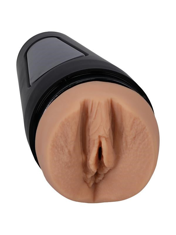 ULTRASKYN stroker molded from Kenna James with textured interior, squeeze plate, and adjustable suction for customizable sensation.