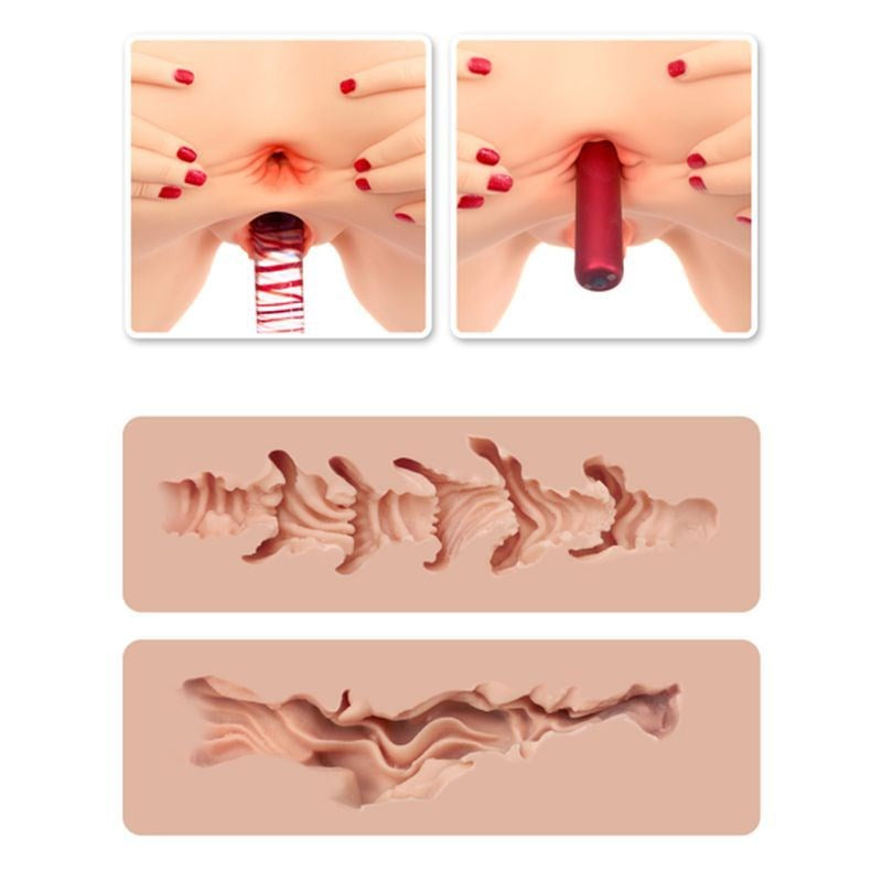 Dual-entry TPE masturbator with realistic vaginal and anal passages. Weighted 7kg torso for stable hands-free play and anatomically accurate sensation.