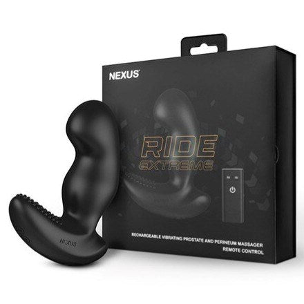 Dual-motor prostate massager with 48 vibration combinations and 8-meter remote control for simultaneous prostate and perineum stimulation.