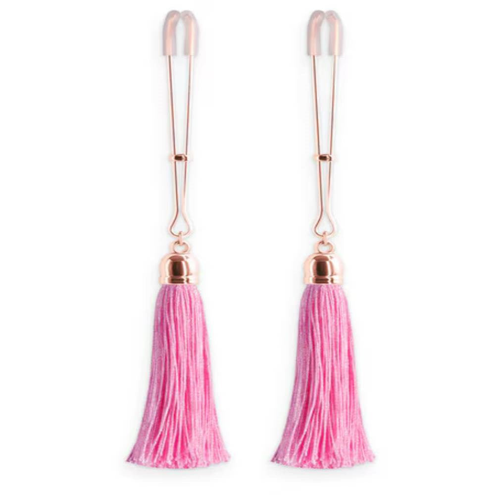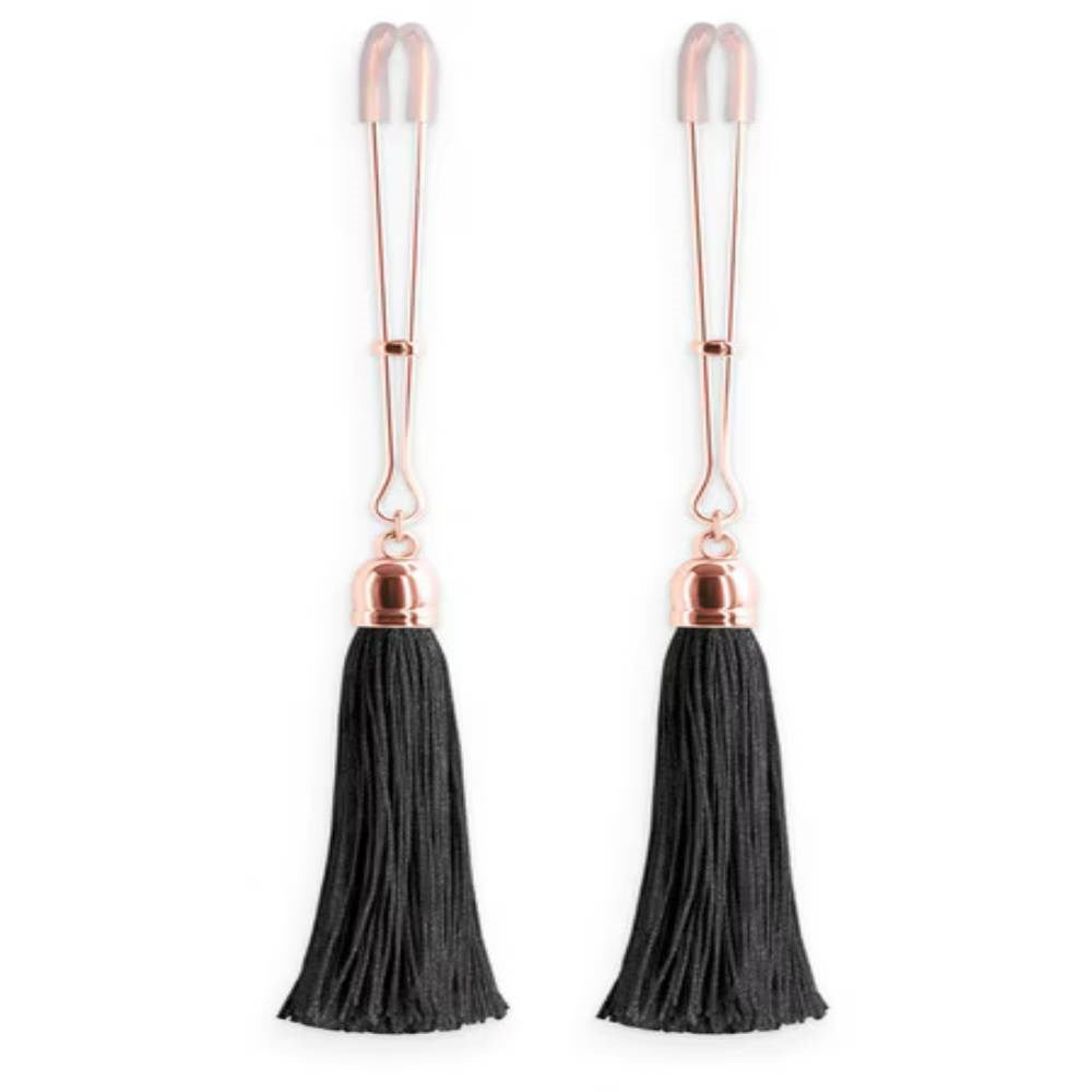 Adjustable nipple clamps with silicone tips and nickel-free iron construction. Customizable pressure control for precise stimulation.