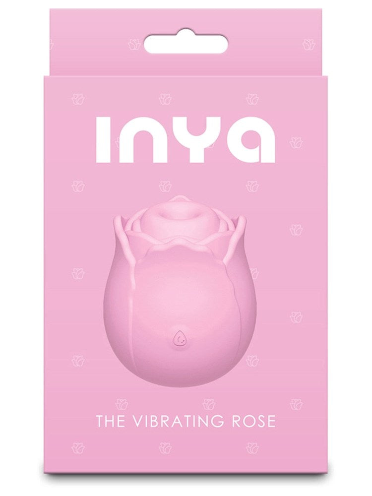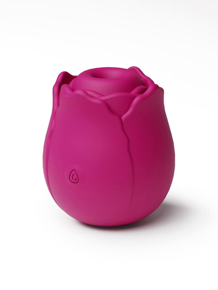 Rose-shaped clitoral massager with rechargeable battery and waterproof silicone construction for targeted vibration stimulation.