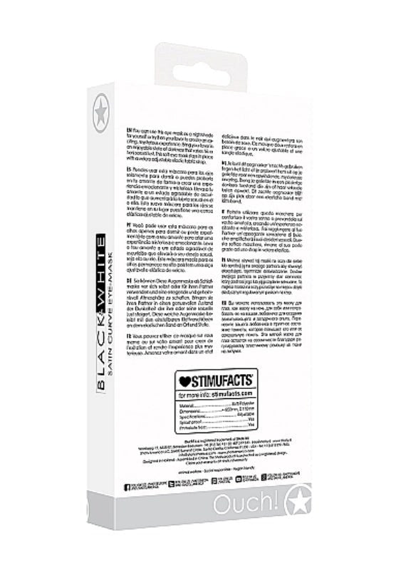 Shots Toys satin eye mask with curvy design blocks light completely for sensory play. Elastic straps secure fit for extended wear.
