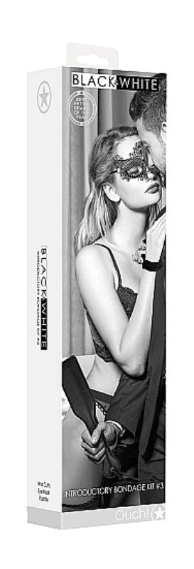 Lace mask and furry cuff bondage kit for couples. Sensory deprivation restraint set with adjustable fit for beginner power play.