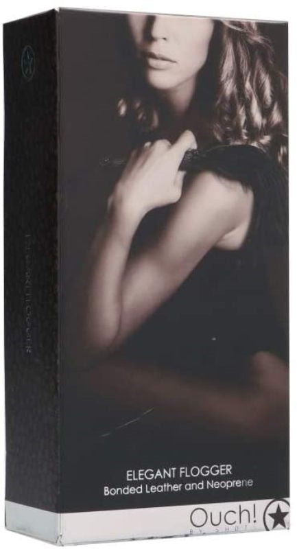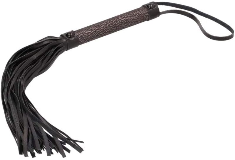 Bonded leather flogger with wooden handle for impact play. Titanium grey finish delivers controlled sensations with balanced, fatigue-free performance.
