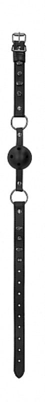 Silicone ball gag with four breathing holes for safe BDSM play. Skull and spike design with adjustable head strap.