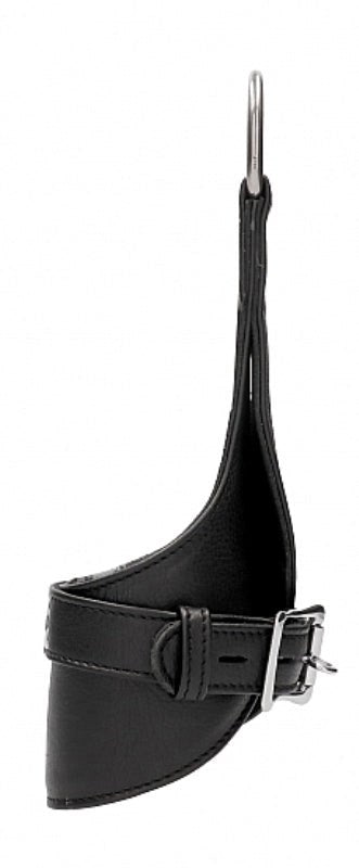 Genuine leather suspension cuffs with reinforced construction and oversized steel O-rings for secure weight distribution during suspension play.