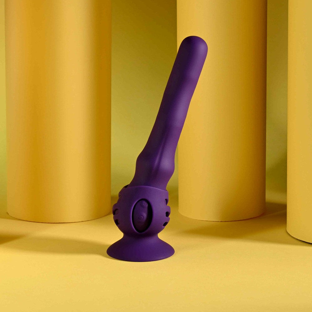 Dual-motor wiggling vibrator with independent controls. Zig-zag shaft twists and bends with seven vibration speeds and three wiggling speeds.