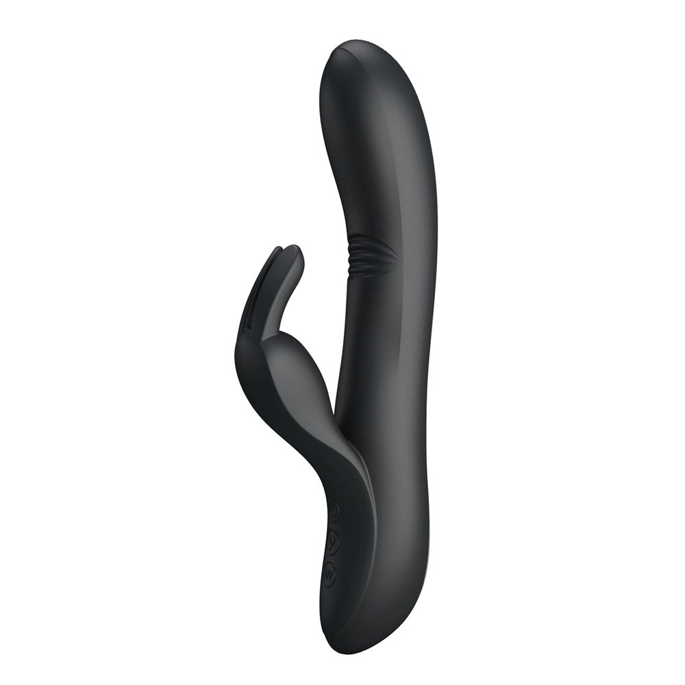 Dual-stimulation rabbit vibe with waving shaft technology and seven vibration modes. USB rechargeable silicone design for internal and external pleasure.