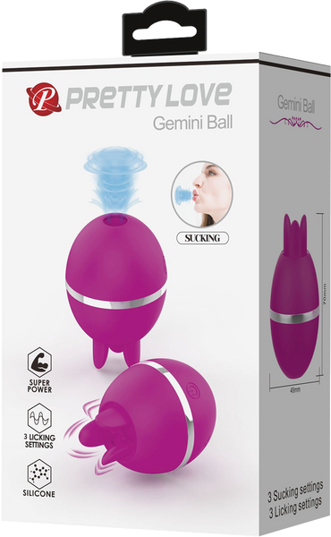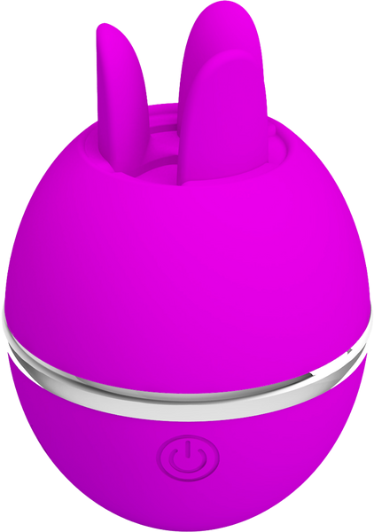 Dual-tongue clitoral vibrator with independent movement patterns. Six functions combining tapping and licking sensations for external stimulation.
