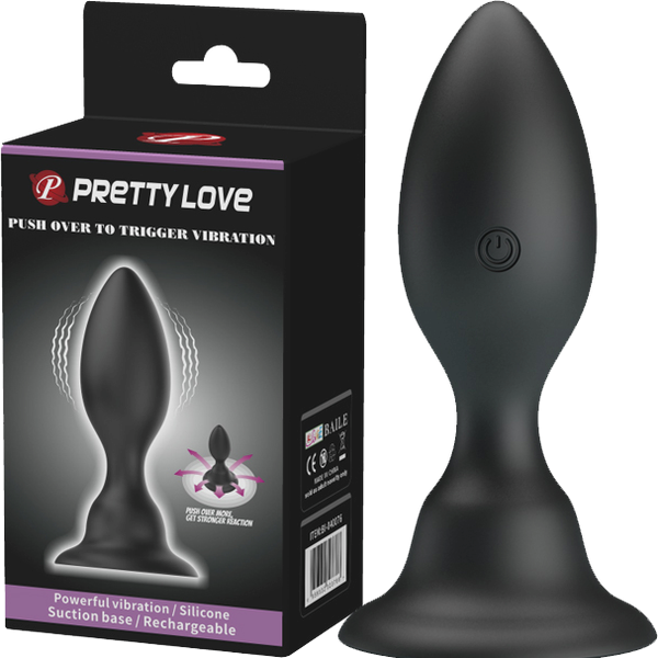 Motion-activated vibrating anal plug with hands-free suction base. Medical-grade silicone responds to body movement for synchronized stimulation.